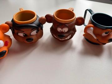 Set van vrolijke berenbekers, ideaal voor kinderen of verzamelaars. Deze bekers zijn gebruikt, maar nog in goede staat en klaar voor een tweede leven. Perfect voor een speelse toevoeging aan de keuken