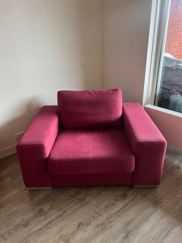 Mooie brede rode fateuil met stevige armleuningen. Zit erg lekker. Is niet erg zwaar