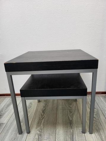 Handige tafeltjes. Duidelijk gebruikt, zoals ook op de foto te zien. Grotere tafeltje: 50x50 cm (l×b) 50,5 cm (h) kleinere tafeltje: 40x40 cm (lxb) 33,5 cm (h)