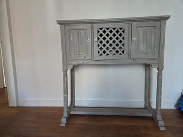 Frans kastje, brocante. Grijsgeschilderd met whitewash. Kastje gaat weg ivm verhuizing. Middelste deurtje sluit niet goed, voor de rest heel mooi kastje om te zien. Planken binnenin moeten worden vast