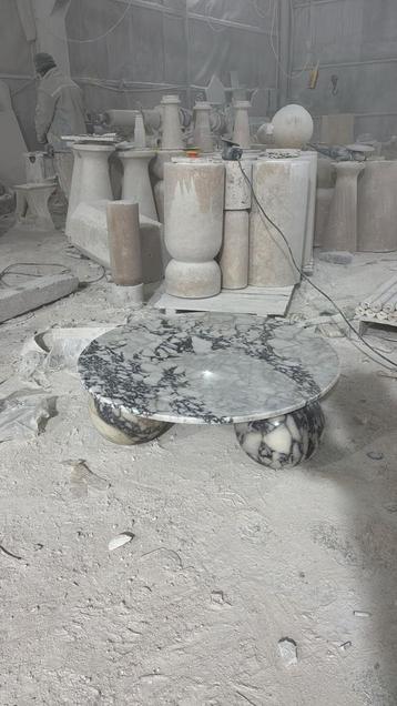 Prachtige, op maat gemaakte eettafel of salontafel van calacatta viola marmer. Dit unieke stuk is nieuw en kan volledig naar wens worden aangepast qua afmetingen en vorm. Het calacatta viola marmer st
