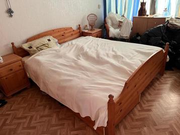 Houten tweepersoonsbed met bijpassende kledingkast