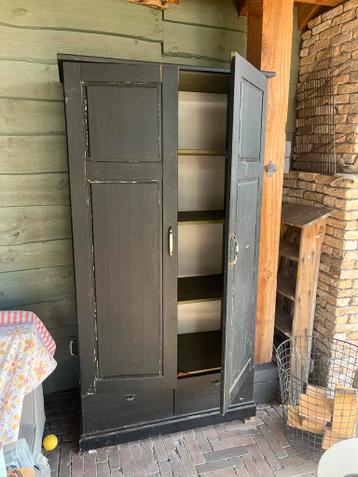 Mooie grenenkast met deuren en planken, ideaal voor opslag. De kast is 160 cm hoog, 80 cm breed en 39 cm diep (met deur). De kast heeft een nieuwe verflaag nodig om er weer als nieuw uit te zien, wat