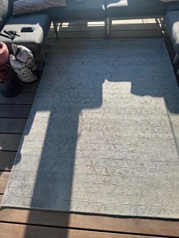 Grijs kleed. Met mooie vintage print. Let op, er zitten vlekken op het kleed, twee roestkleurige vlekken. Ik heb het er niet geprobeerd uit te krijgen.