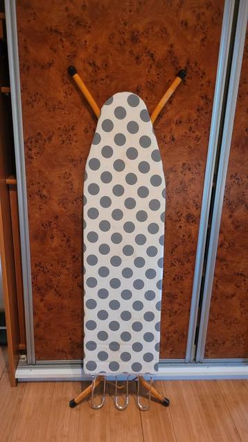 Gratis af te halen: een gebruikte strijkplank met een vrolijk stippenpatroon. De strijkplank is nog in goede staat en functioneert prima, ideaal voor wie een budgetvriendelijke oplossing zoekt om de w