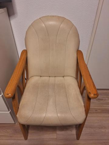 Dit leuke stoeltje zit nog prima en heeft geen beschadigingen. Er zijn wat verkleuringen in de stof, maar deze zijn mogelijk nog schoon te krijgen. Ideaal voor een gezellige hoek in huis of als extra