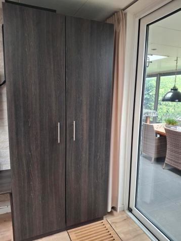 Grote kast afmetingen: 220 x 100 x 63 linksboven moet een scharnier gemaakt worden en de planken moeten er zelf vast ingemaakt worden.