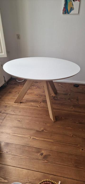 Gratis ronde tafel. Opknapper. 1 Poot zit los, lukt mij niet om te repareren. Gratis. Diameter is 120cm