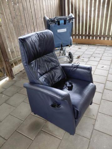 Comfortabele blauwe sta-op stoel, bekleed met duurzaam skai. Ideaal voor mensen die moeite hebben met opstaan. De stoel is in goede staat en functioneert naar behoren. Perfect voor een ontspannen zite