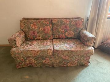 Leuk stoffen bankje met stevige zit en bloemmotief. Afmeting 140 cm breed, 80 cm diep, 40 cm zithoogte en totale hoogte rugleuning 75 cm. Stof aan voorkant rechter zitkussen is wat kapot. We maken er
