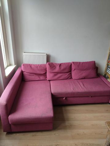 Zaterdag 21 maart gratis ophalen! Comfortabele roze hoekbank, ideaal voor kleine ruimtes. Deze bank is eenvoudig om te toveren tot een ruim tweepersoonsbed en biedt tevens handige opbergruimte onder d