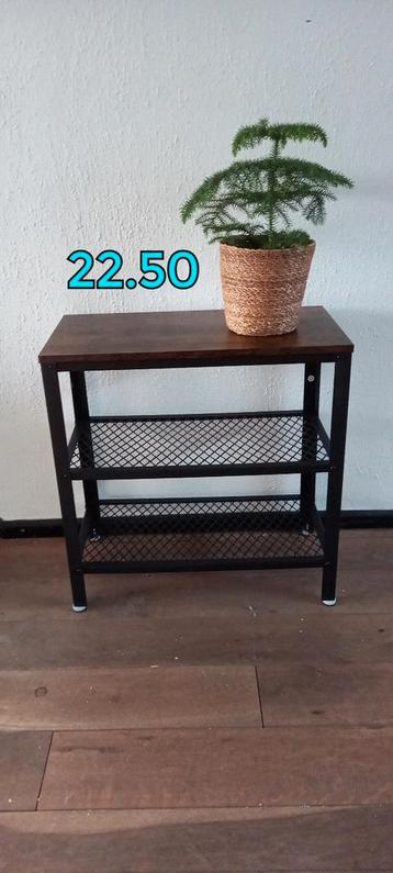 Twee handige meubeltjes met een combinatie van ijzer en hout. Perfect als bijzettafel, nachtkastje of voor extra opbergruimte. Het grotere meubel is 22.50 Euro en het kleinere meubel is 17.50 Euro. Ze