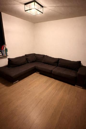 Zwarte hoekbank bestaande uit 2 delen. De bank is in goede staat en biedt veel zitruimte. Kussens/zitvlakken zijn met rits te openen / te wassen afmetingen: zitvlak 1: 100 cm breed x 230 cm diep zitvl