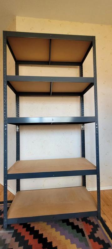 Stellingkast, circa 90 breed, 189 hoog, 40 diep. Handig om je spullen op te ruimen.