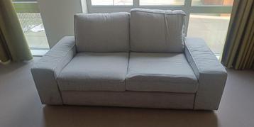 Deze comfortabele tweepersoonsbank in een neutrale lichtgrijze kleur is perfect voor elke woonkamer. De bank is in goede staat en biedt voldoende ruimte voor twee personen. Ideaal voor een knusse avon