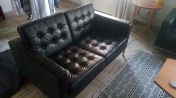 Bankstel zwart leer 2 zits én 3 zits. Niet nieuw met gebruikssporen er zijn een paar knopen van de kussen af zit lekker mag weg vanwege verhuizing