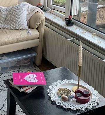Hij is zwart geschilderd, met mooi opschuren kan je er een nette bijzettafel van maken! Blad: 58x58 cm poten: 24 cm hoog gratis op te halen!