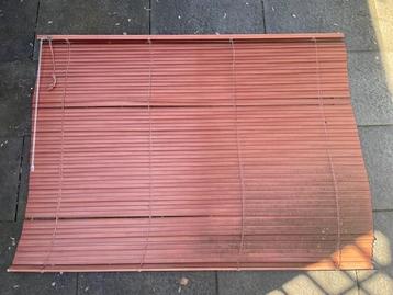 Gratis af te halen raamjaloezie , alu lamellen (smal) kleur: bruin/houtstructuur breedte 156cm hoogte (uitval) 110cm incl. 3 Ophangbeugeltjes