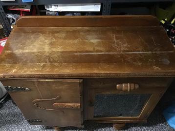 Voor de liefhebber. Ontzettend leuk theemeubeltje. Mogelijk antiek!. Op bolpootjes. Met glas in lood heeft uiteraard gebruik sporen . Dit maakt het authentieker. Breedte 90 cm, hoogte 82 cm, diepte 38