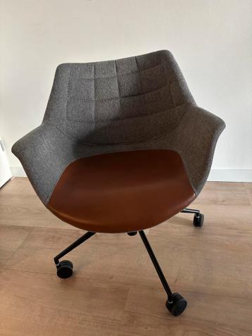 Mooi bureaustoeltje, stof/kunstofleder. In hoogte verstelbaar, draaibaar. Stoel is paar jaar gebruikt, ziet er nog mooi uit en is niet kapot. Maar kraakt nogal bij gebruik / tijdens het zitten, mag da