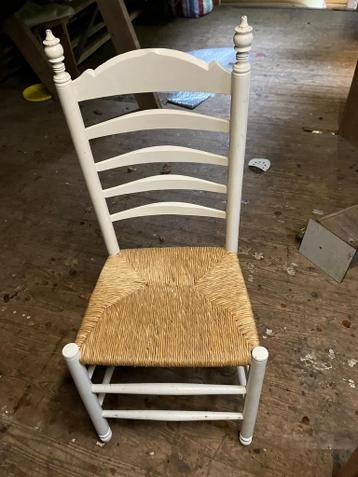 Mooie, klassieke oudhollandse stoel met een stevige biezen zitting. Deze stoel is ideaal voor een landelijke inrichting of als decoratief element. De stoel is wit geschilderd en heeft een authentieke