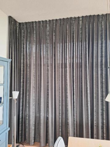 Set van 4 overgordijnen, extra lang (3.25 M). Merk seattle tp. Zware kwaliteit, dubbel geplooid, vlinderplooi. Kleur: olifanten-grijs. Verduisteren goed. In goede staat, zien er mooi uit. Afmetingen: