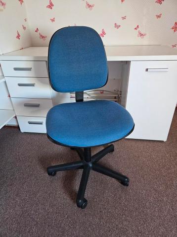 Blauwe bureaustoel, ideaal voor thuiswerken of studeren. De stoel is in goede staat. De hoogte is verstelbaar.