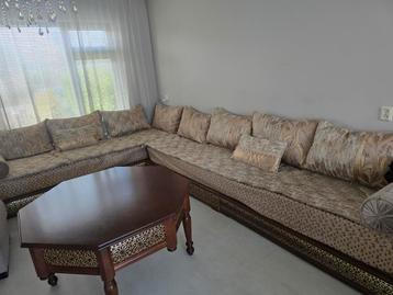 De conditie is gebruikt, het betreft het hout, de matrassen en de hoezen en de grote tafel. Het zijn gedeeltes van 1.5 M, 2.5 M en 3 meter