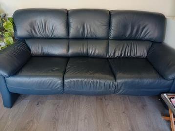 Gratis af te halen: fijne blauwe 3-zitsbank (195 cm breed), gebruikt, stoffen afdekking aan onderkant door de kat 'gesloopt', zie foto's. Méér foto's op aanvraag.