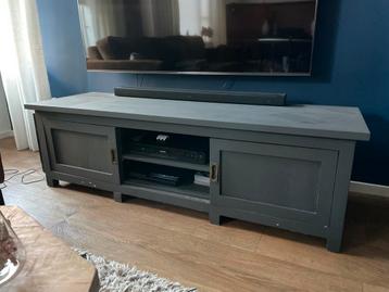 Wegens verhuizing gratis af te halen: een tv meubel van oorspronkelijk donker teak. De buitenkant van het kastje is geverfd. Het meubel is een opknappertje en heeft 2 schuifdeurtjes en 2 legplanken. A
