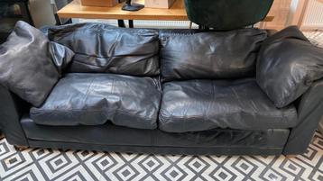 Bank, lichte beschadeging onder het kussen (zie foto). De bank is gebruikt maar kan nog zeker een rondje mee. Gratis op te halen in het centrum van amsterdam.