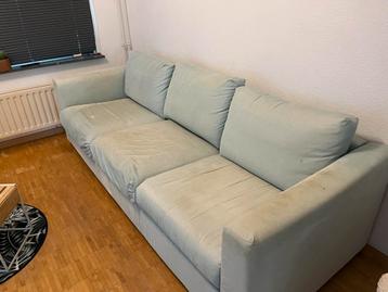 Comfortabele 3-zitsbank met afneembare hoezen, ideaal voor een frisse look. De bank is nog steeds stevig en in goede staat, klaar voor een tweede leven in uw woonkamer. De hoezen zijn eenvoudig te rei