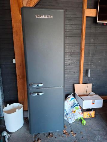 Retro-look koelkast & vriezer in één. Is kapot gegaan, omdat hij waarschijnlijk te nat is geworden of door vorst.