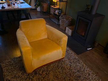 Deze fijne stoel met opvallende gele bekleding is nog in prima staat en zoekt een nieuwe eigenaar. Perfect voor een gezellige leeshoek of als extra zitplaats in de woonkamer. De stoel biedt veel comfo