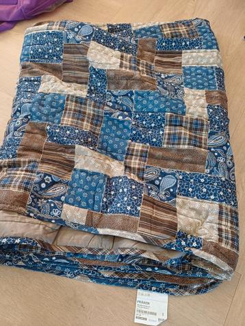 Mooie en grote ikea fräken sprei/deken, geschikt voor een tweepersoonsbed. De deken heeft een patchwork-achtig patroon in blauw- en bruintinten. Ideaal om je slaapkamer een gezellige uitstraling te ge