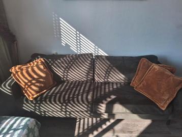 Gratis op te halen mooie, comfortabele fluweel groene bank. Komt uit een rookvrij huis, heeft wel wat beschadigingen van de katten (links aan de armleuning amper te zien, rechts wel meer aanwezig). Oo