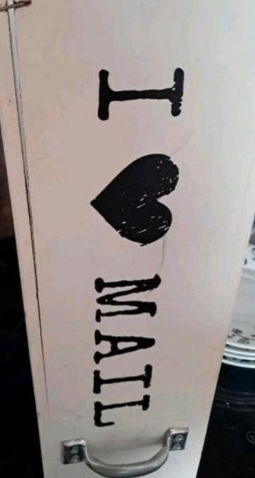 Leuke post organizer met de tekst 'i love mail'. Ideaal om je post georganiseerd te houden. Moet voor maandag opgehaald worden.