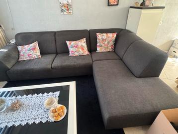 Deze ruime en comfortabele hoekbank in donkergrijs/zwart is perfect voor een gezellige zithoek. De bank is bekleed met stof. De bank is in biedt plaats aan vier personen of meer.