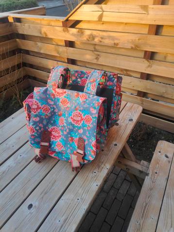 Mooie fietstas met een vrolijke bloemenprint. Ideaal voor boodschappen of een dagje uit. De tas is gebruikt, maar nog in goede staat. Gratis op te halen.