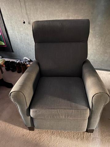Grijze relaxstoel. Ziet er nog heel goed uit. Wegens plaatsgebrek mag hij weg.