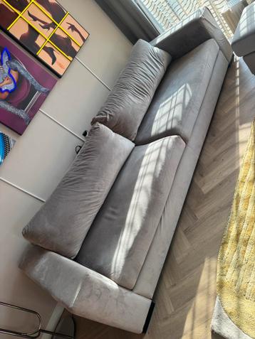 Gratis af te halen: een taupekleurige bank inclusief bijpassende hocker. De bank komt niet uit een rookvrij huis en heeft brandgaatjes en vlekjes, zoals te zien op de foto's. Ideaal voor wie op zo