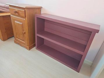 Twee stevige kastjes die een opknapbeurt nodig hebben. Ideaal voor de handige klusser die er iets moois van wil maken. Het ene kastje is een nachtkastje met lade en deurtje, het andere is een open kas