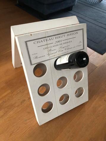 Wijnrek voor 18 flessen met leuke franse tekst gebruikte staat (zie foto’s) vandaar gratis op te halen in hengelo (ov)