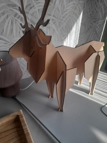 Mooi decoratief hert, gemaakt van dun hout. Ideaal als decoratie in huis, bijvoorbeeld tijdens de feestdagen of als een uniek object in een kinderkamer. Het hert is in goede staat en kan gratis worden