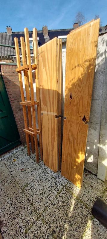 Schuurstelling van hout met 3 hoogtes lengte circa 3 meter ( 6planken) 3 staanders