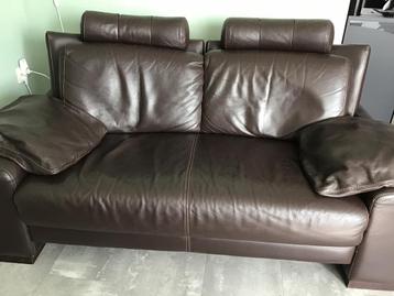 Bruin leren bank. Kan zeker nog mee maar we zijn er op uitgekeken.