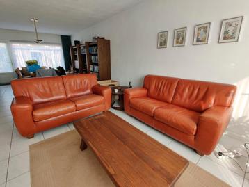 Leren bankstel bestaande uit twee tweezitsbanken van 175 cm lang en een losse stoel van 103 cm breed. De set is gebruikt, maar in prima staat. Zie ook met in andere advertenties.