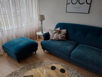 De bank biedt plaats aan 3 personen. Breedte is 225cm. Bijbehorende poef is 75 x75cm.