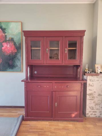 antiek grenen buffet kast ,is later rood geschilderd ,35 jaar geleden gekocht voor 1400,00 gulden, bij de winckelaar in strijen.190 Cm hoog 60 cm diep en 130 cm breed.