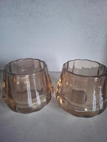 Twee bruin, goudkleurige glazen waxinelichthouders in prima staat. Gratis ophalen!